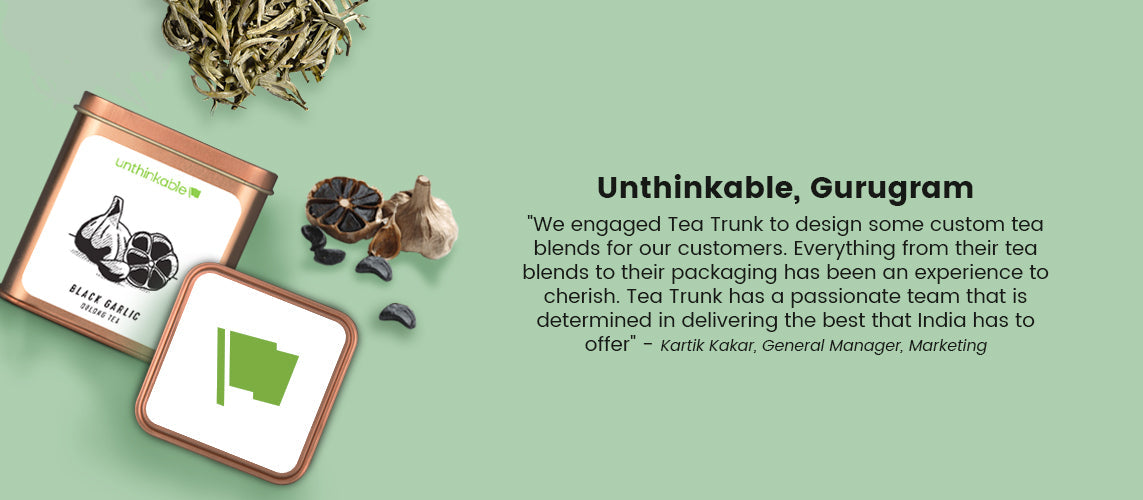 "From the quirky packaging to the flavoured teas, everything is quite unique. Like a cup of their well-balanced tea, their team has always been a pleasure to work with. We can't thank you enough for our custom label tea trunk tins for our gift boxes. You guys are amazing."