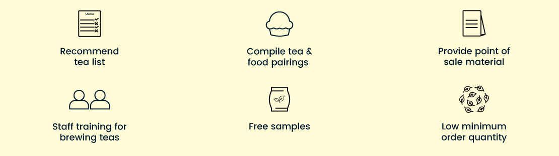 As your tea supplier, we help you create value for your customers and strengthen your existing food philosophy. We work closely with our hospitality partners and offer the following complimentary services: