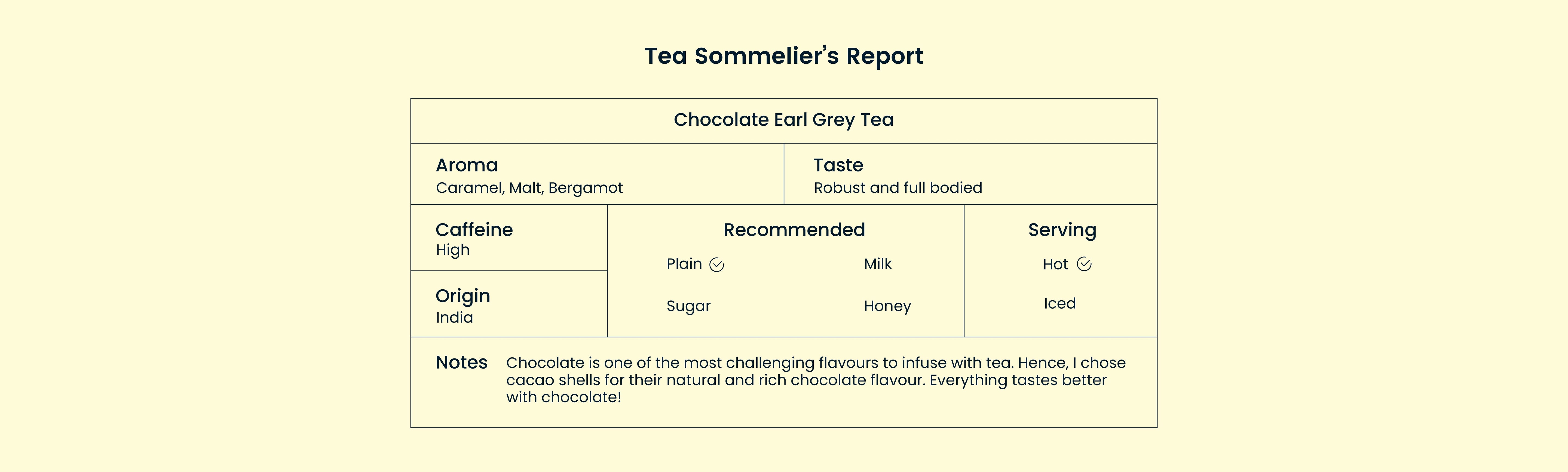 Cacao shells-Mason & Co. Crafstmen of Chocolate.) ; Earl Grey- Assam, India
