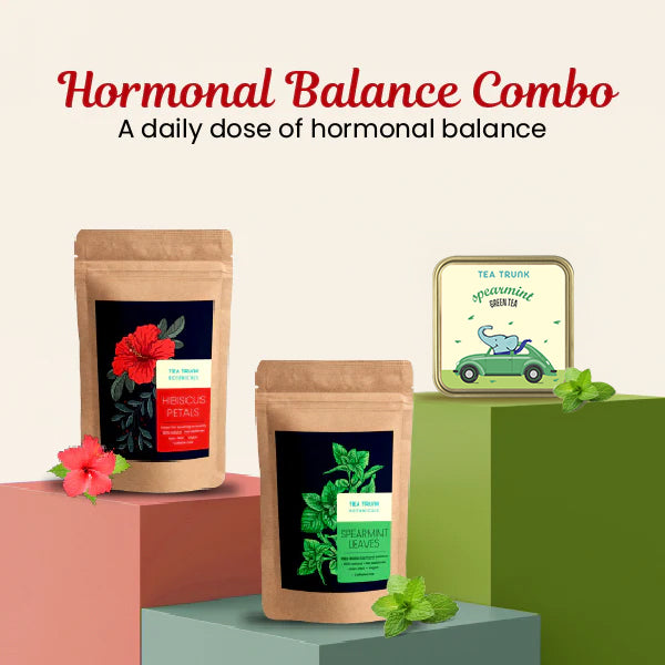 Our Hormonal Balance Combo is a breath of fresh air for your wellbeing. This unique blend of natural ingredients – spearmint green leaves, hibiscus leaves, and spearmint green tea – works together to gently support your body's natural hormonal rhythm.