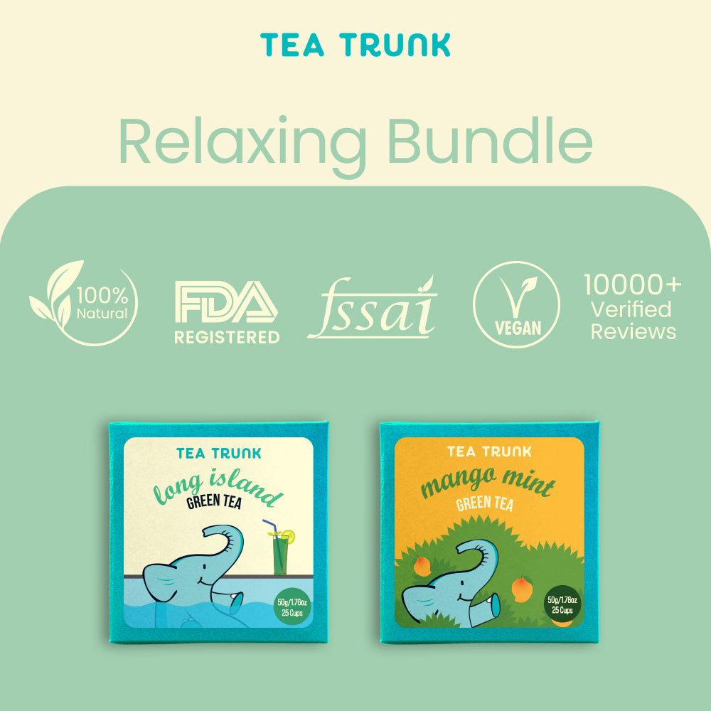 Indulge in tranquility with our Relaxing Tea Bundle, featuring Mango Mint Green Tea and Long Island Green Tea. The Mango Mint Green Tea invites you to unwind with the soothing blend of sweet mango and refreshing mint, while the Long Island Green Tea offers a serene and balanced flavor, perfect for moments of calm. Embrace relaxation and savor the peace in every sip with this enticing tea pair.